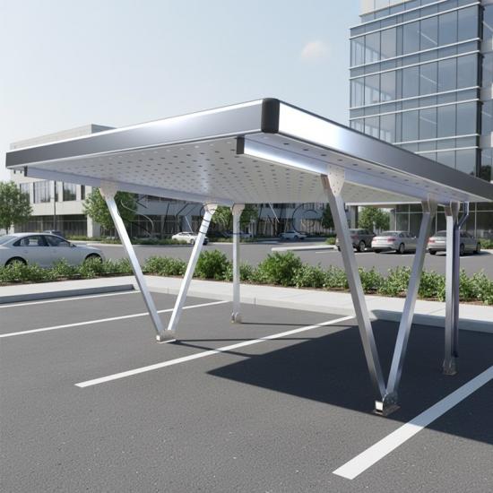 Het beschikt over duurzame aluminiumframes die schaduw en bescherming bieden voor uw voertuig en tegelijkertijd zonnepanelen ondersteunen die schone, hernieuwbare energie genereren.